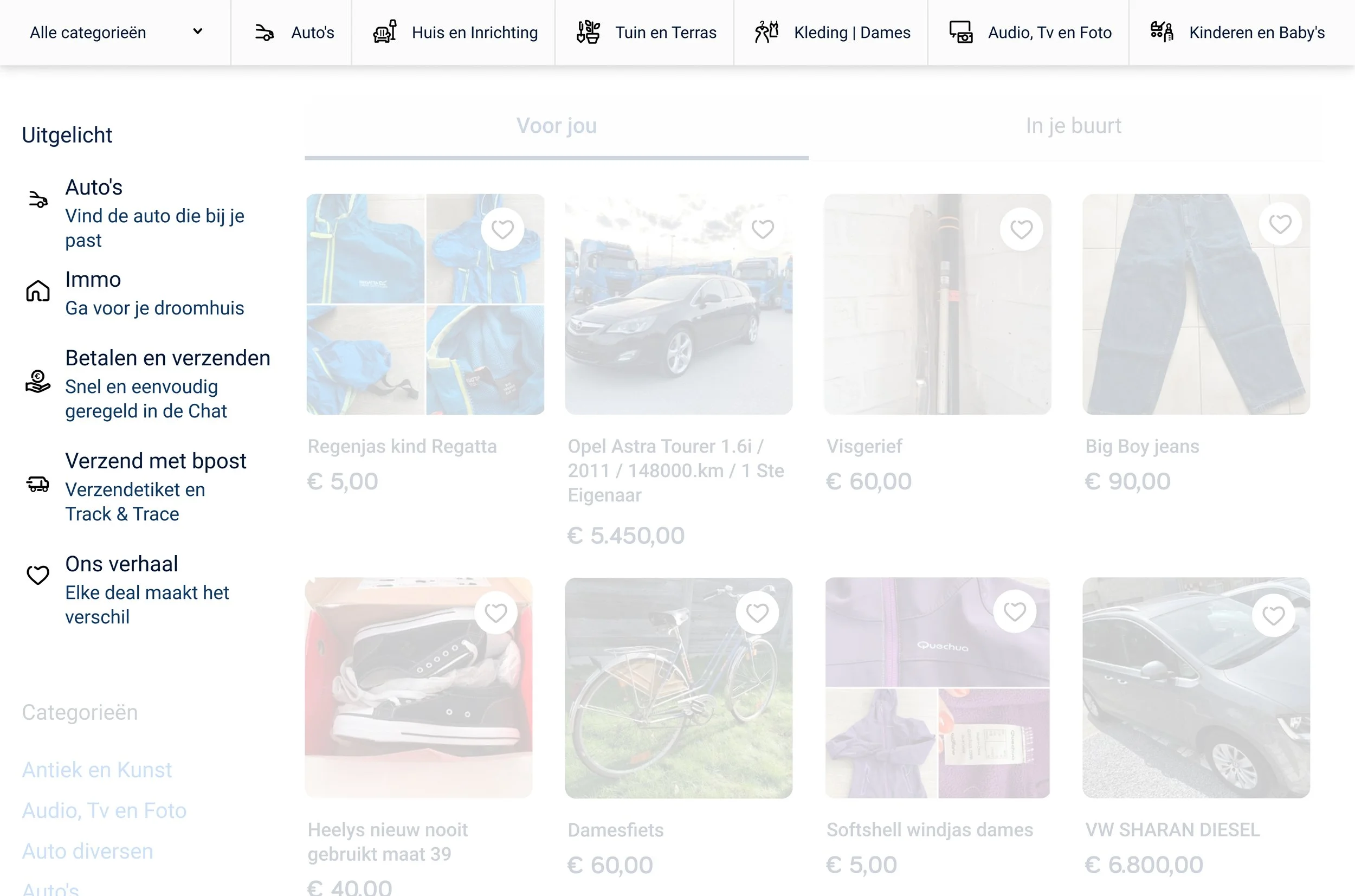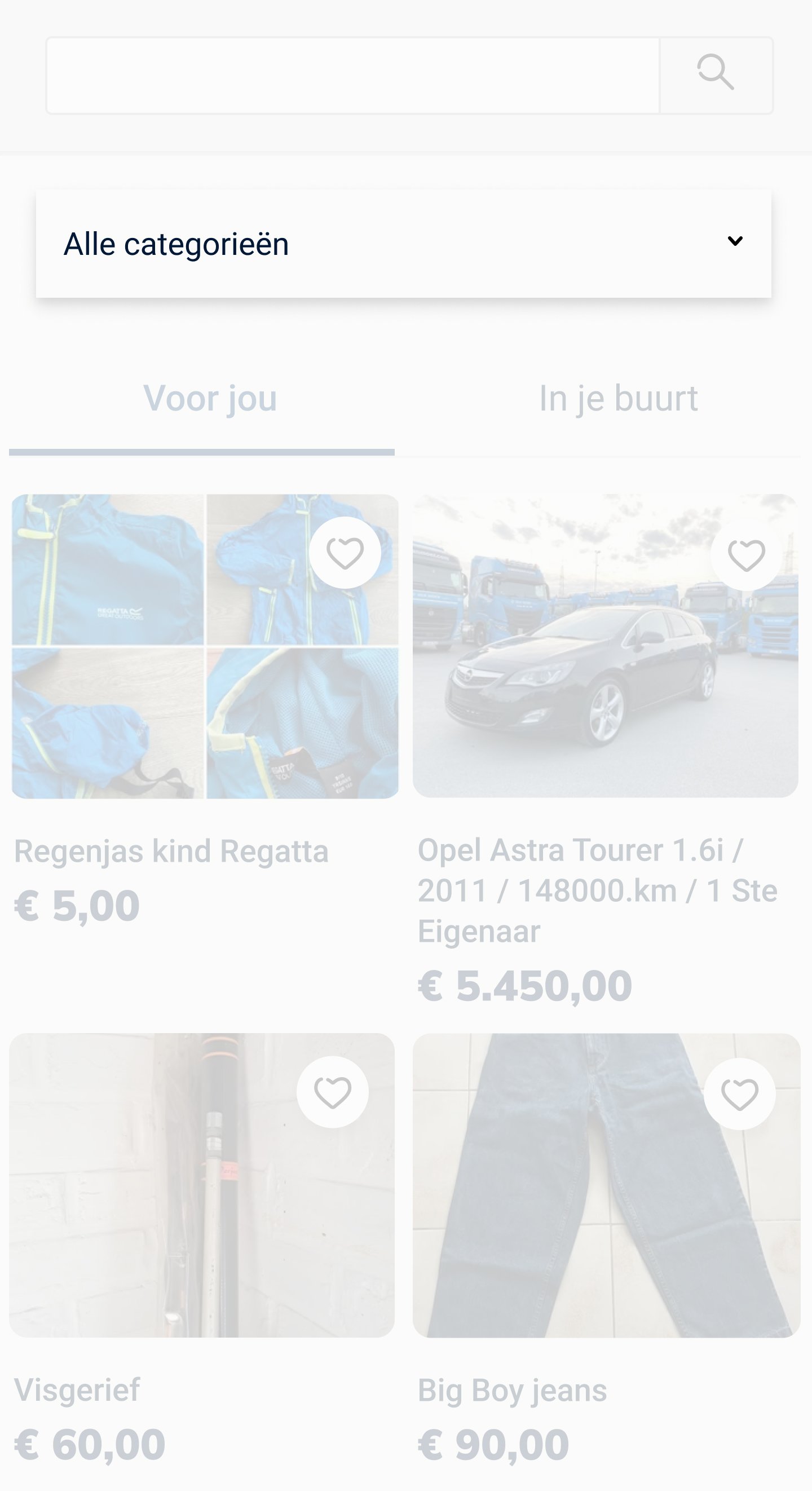 These are useful tabs, one of them with items related to my previous searches (“Voor jou”, which means For You) and another one with listings close to me (“In je buurt”, which means In your Neighborhood)